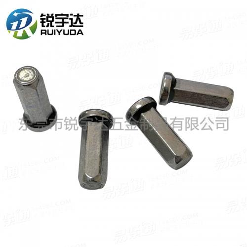 Q37A平圆头全六角盲孔铆螺母平头全六角盲孔点胶拉帽锌镍合金