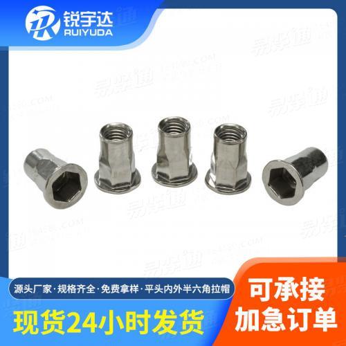 厂家批发平头内外半六角拉帽 不锈钢拉铆螺母m3m6m8通孔拉铆螺母
