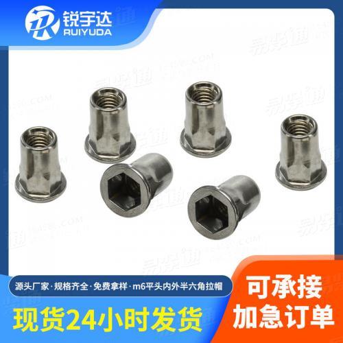M6平头内外半六角拉帽 304不锈钢铆螺母 新能源小沉头拉铆螺母