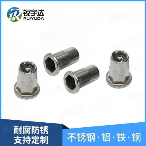 平头铆螺母新能源领域内外通孔铆螺帽 不锈钢半六角拉帽 拉铆螺母